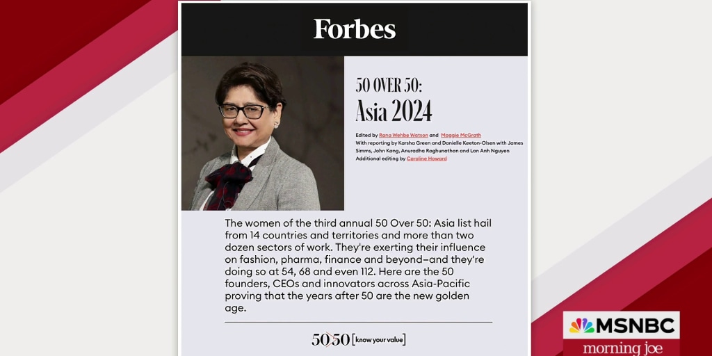 Source : www.msnbc.comForbes and Know Your Value release the ’50 Over 50′ Asia list